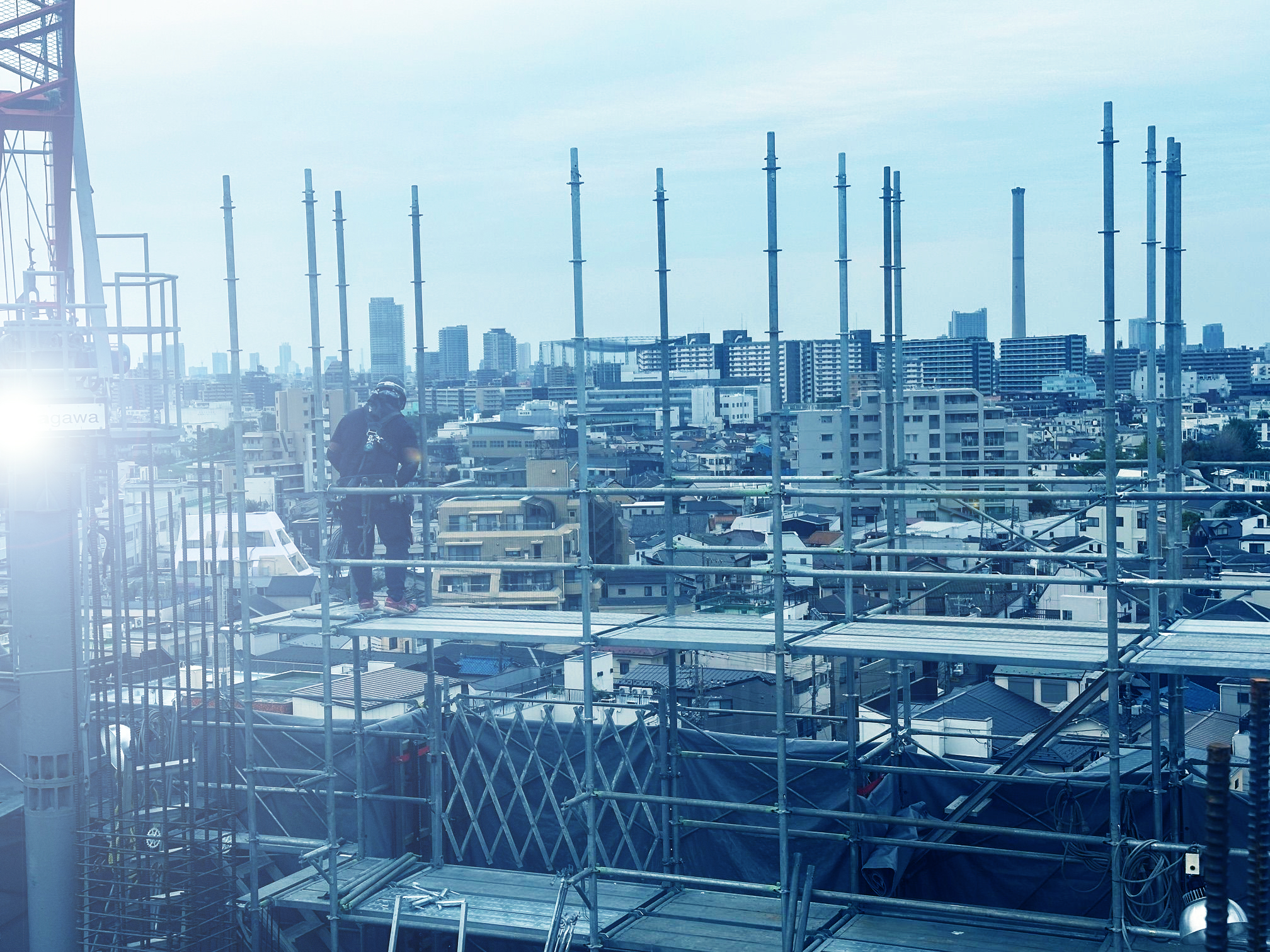 高所での危険な作業現場では、最新の注意を払い、安全な施工を心掛けています。